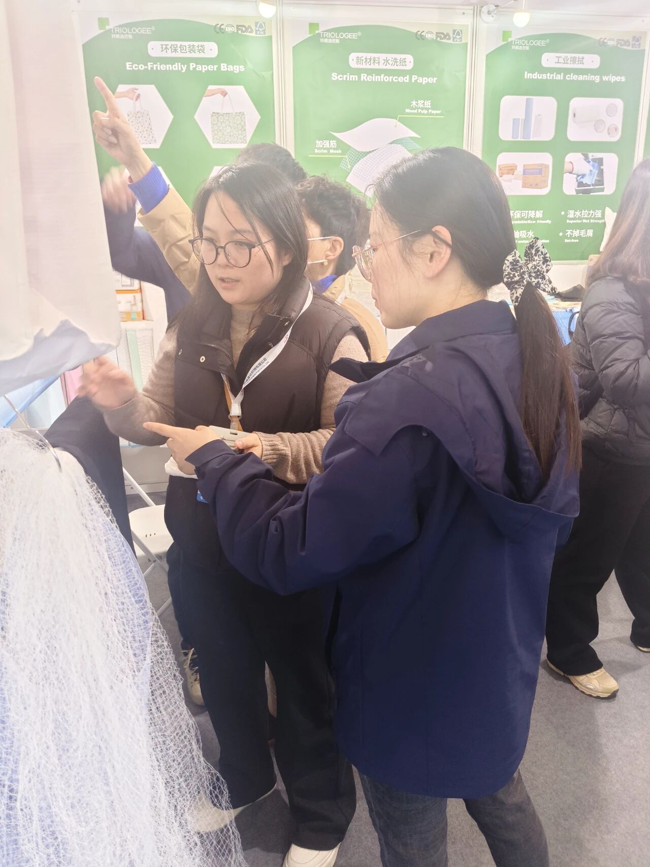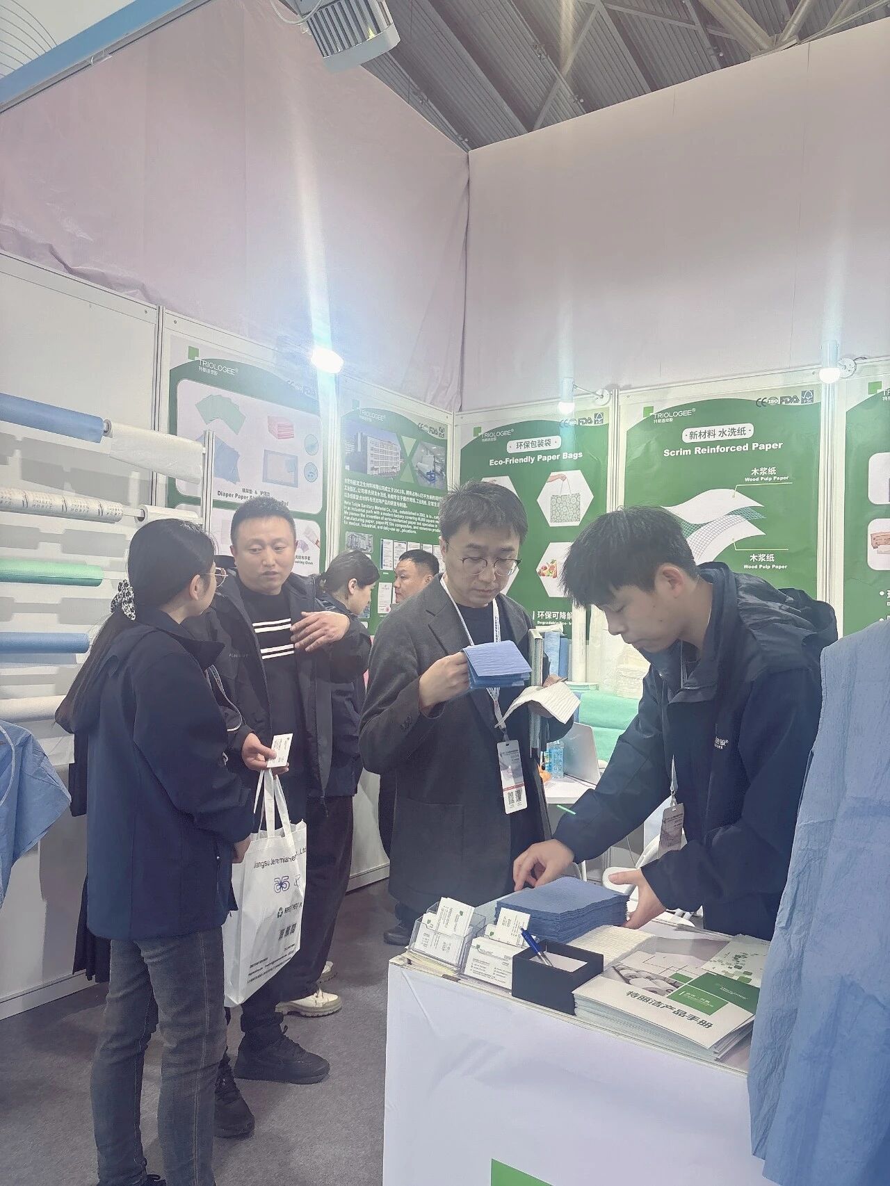 在本次展会上,泰利杰重点展示了其适用于各种应用场景的可水洗纸,同时还展出了床单卷、围兜、各类无纺布产品以及定制解决方案,充分展现了公司在卫生材料领域深厚的技术积累和持续创新能力。展会期间,泰利杰团队通过样品演示、技术讲解和一对一洽谈等方式,与众多客户进行了精准沟通。基于技术创新和服务升级,泰利杰为客户提供了更具针对性的产品匹配方案和优质的售前售后服务。