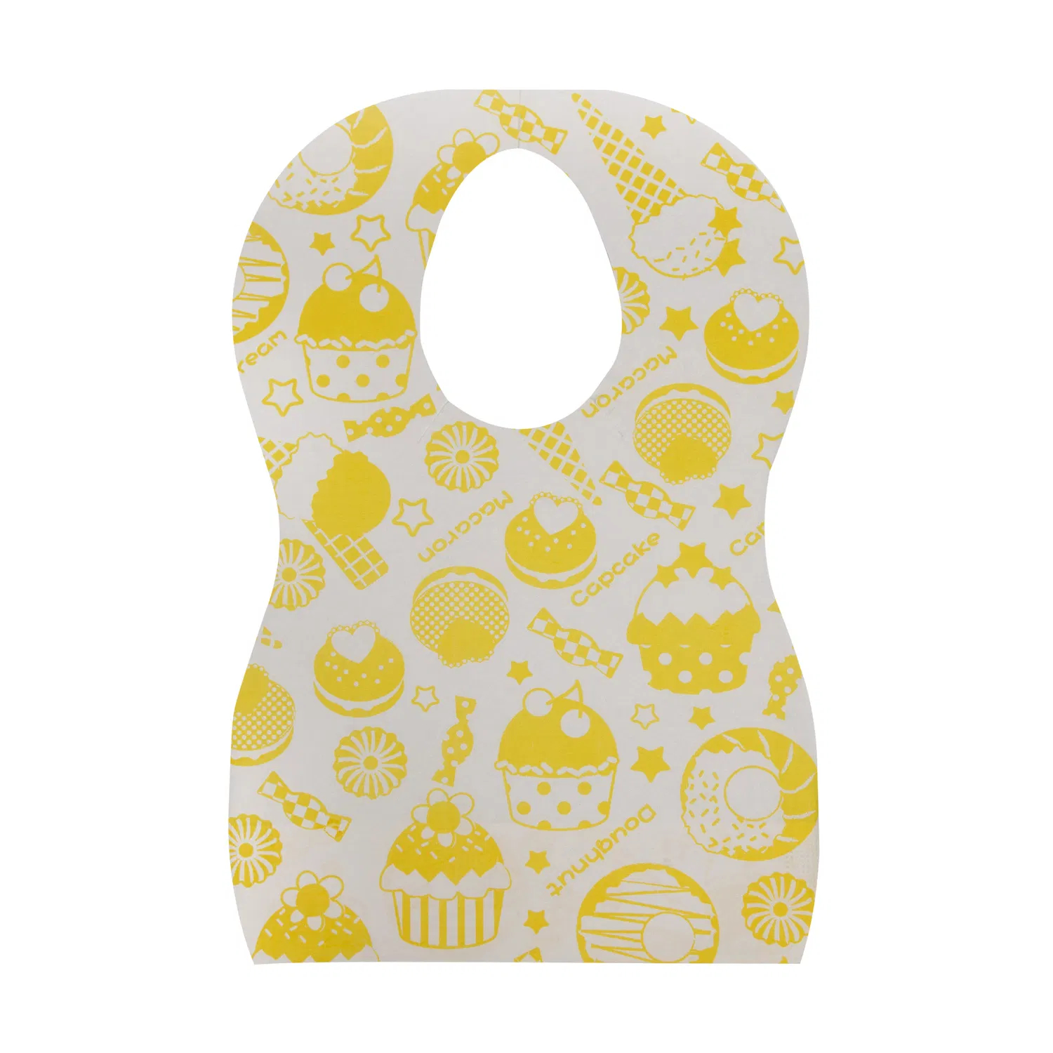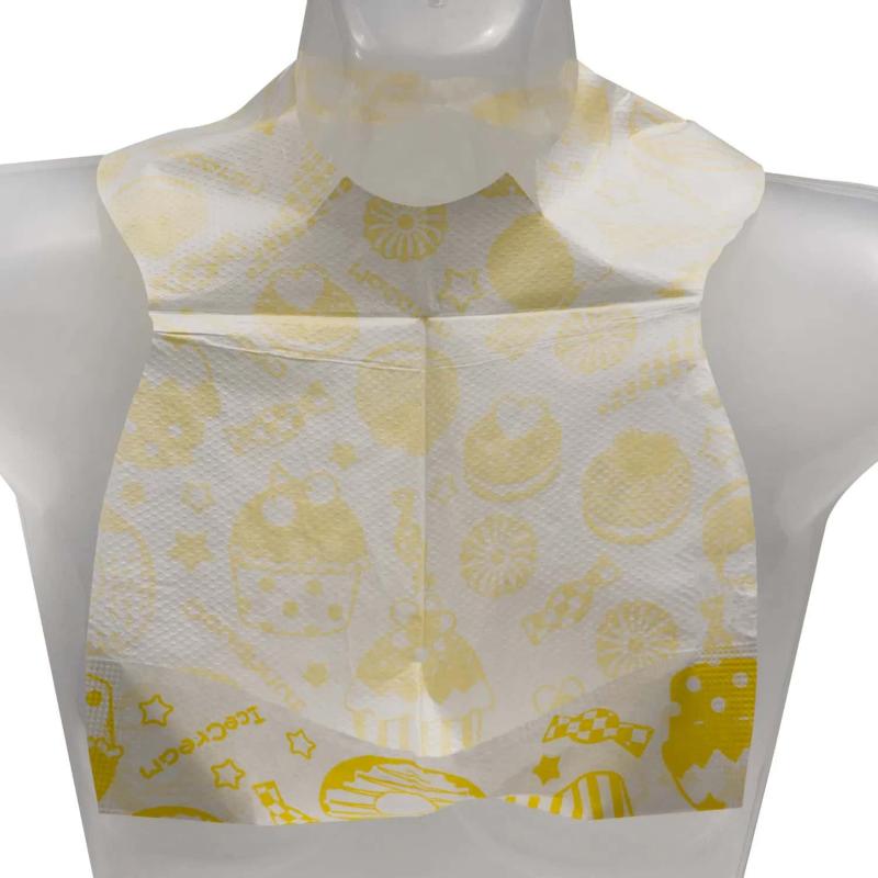 Grembiule monouso per neonati con tasca in carta, realizzato in materiale PE, impermeabile, con possibilità di stampare più motivi.