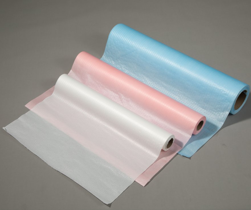 Rotolo di pellicola di carta laminata, lenzuolo per esame degradabile, rotolo di pellicola di carta per lettino/tavolo.