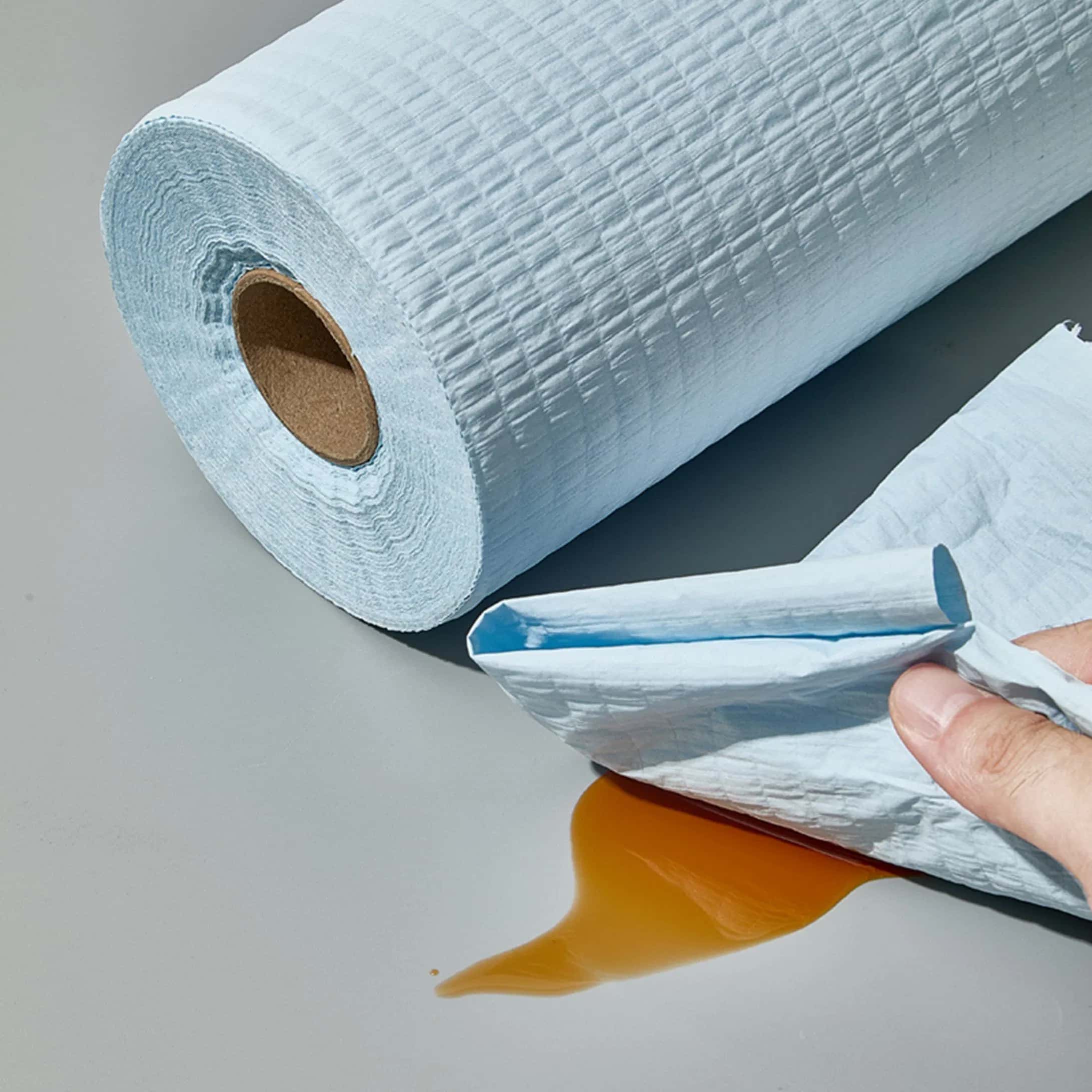 Assorbenza: la struttura a 4 strati ad alta capacità assorbe rapidamente i liquidi per il controllo delle fuoriuscite e la preparazione delle superfici: il vantaggio principale del rotolo di carta assorbente sterile a 4 strati rinforzato.