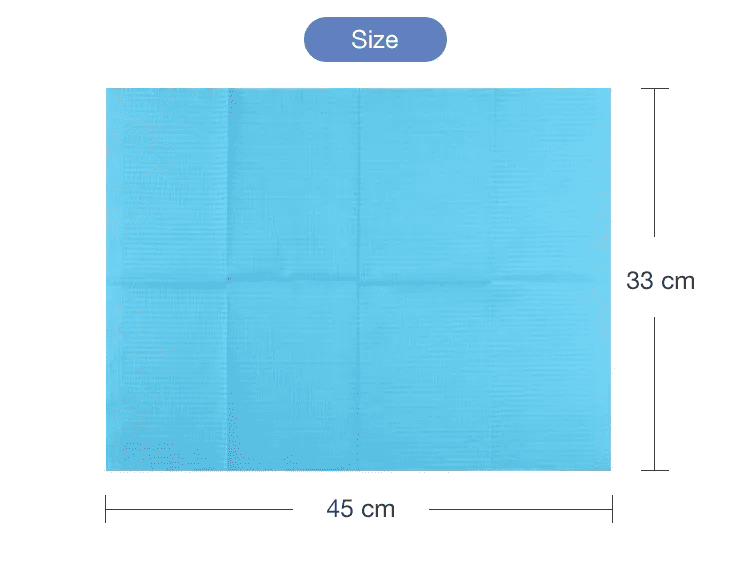 A: Le dimensioni sono 45×66 cm, sufficientemente ampie da garantire una copertura completa sia per i pazienti adulti che per i bambini durante le cure dentistiche, proteggendo i loro vestiti e l'area circostante.